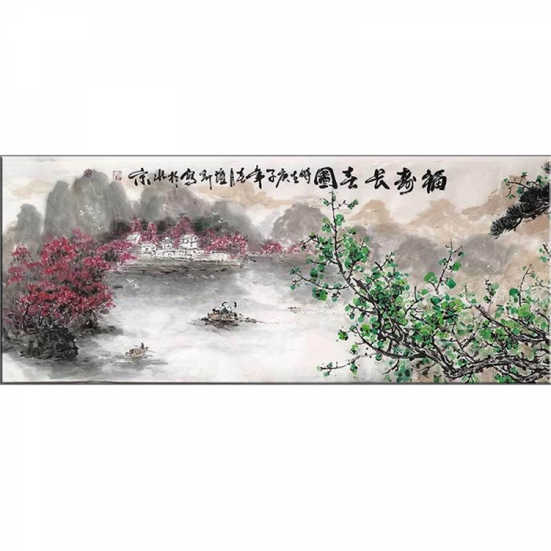 李坛计-美术大师水墨画《五福长青喜迎客》