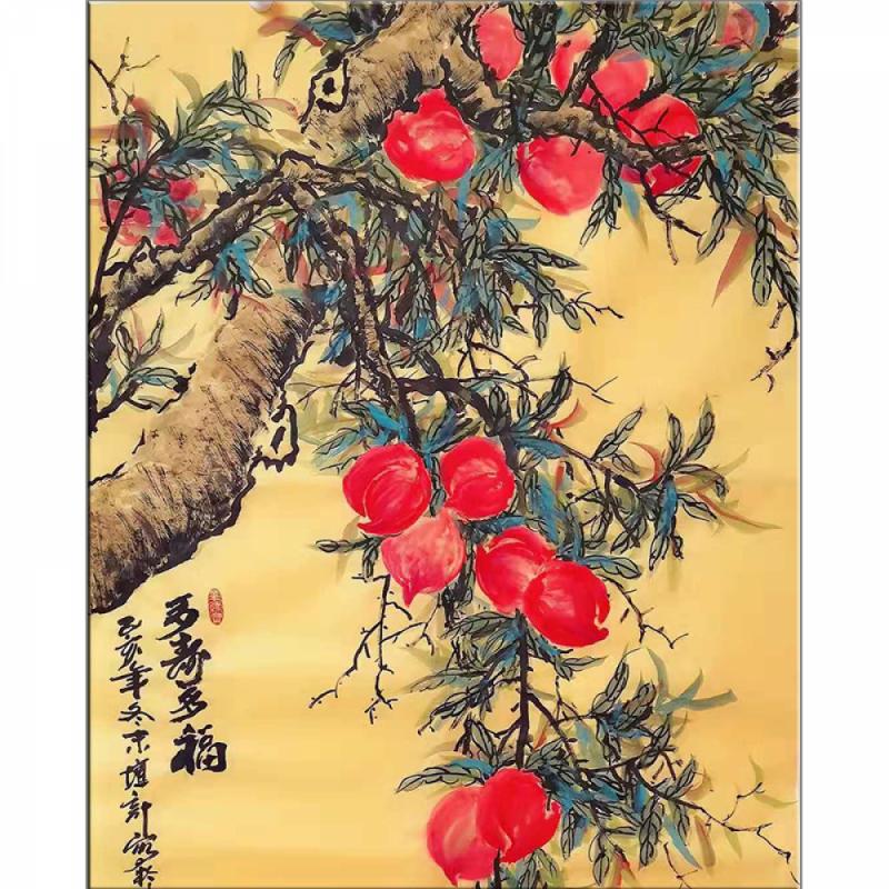 李坛计-美术大师水墨画花鸟-《福寿图》