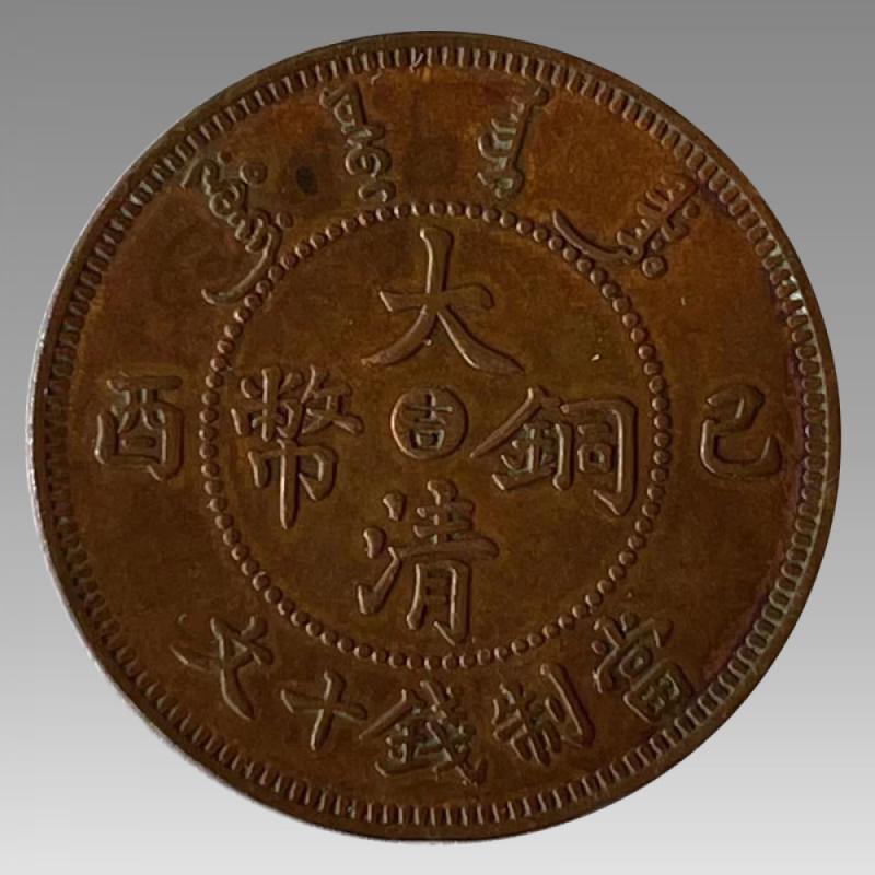 "作品:大清铜币-中心吉。 规格:直径2.8厘米,重量7.3克。 简介:此大清铜币已酉吉字版当制钱十文,为已酉年吉林省铸币局所造,正面珠圈内铸“大清铜币”四字,且中心铸一阴文“吉”字,珠圈外下缘镌币值“当制钱十文”,左右分别铸有干支纪年“己酉”;字体端庄秀丽,挺拔俊秀。背面铸有蟠龙图,外围为“宣统年造”,并铸有英文环绕。神龙纹路依旧,栩栩如生,且龙身纹路精美,并铸有云海衬托,威风凛凛。铸造精美,品相较好,包浆醇厚,具有较高的收藏价值和升值空间。 "