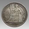 该坐洋币法属印度支那贸易银圆,为清末在华流通的外国银圆之一。这些外国银元材质珍贵,艺术价值高,由贵重金属或白银合金铸造,制作精美,图案考究,文字清秀,内容丰富,银光灿烂,其貌可人,也具有一定的保值和升值功能。