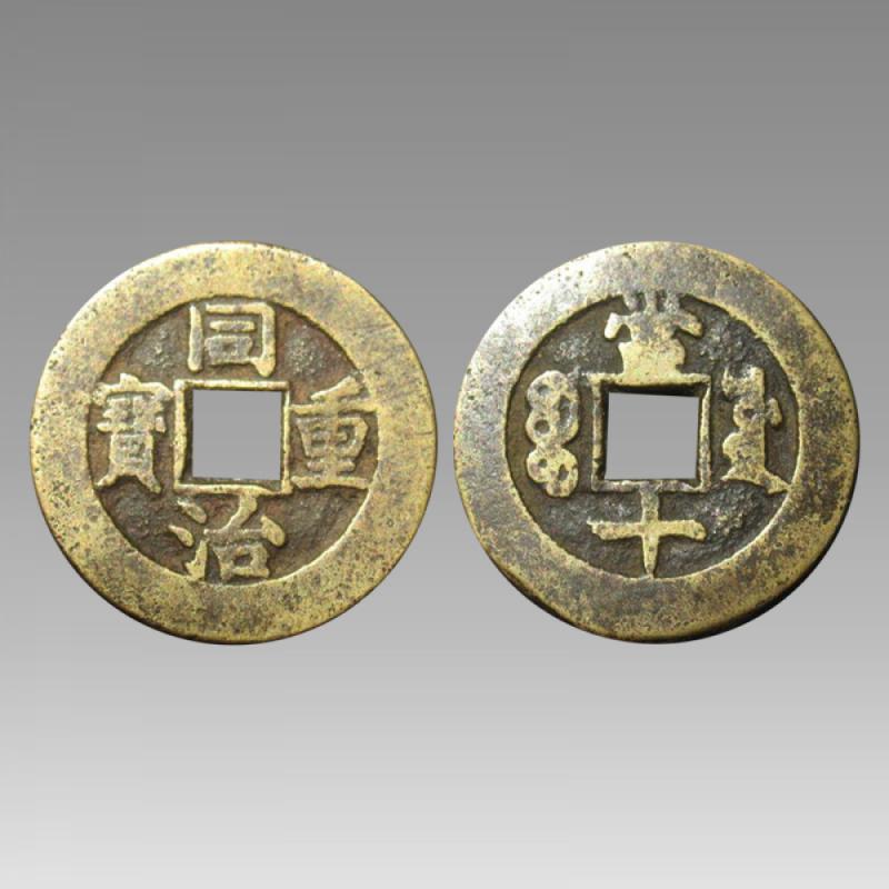 同治重宝是中国古代钱币之一,于清朝同治年间(公元1862--1874年)铸造。同治重宝其宫廷意义在于是两宫同治(尊皇后钮祜禄氏为母后皇太后,懿贵妃、载淳生母叶赫那拉氏为圣母皇太后);而在民间看来,是上下一心、同臻郅治。