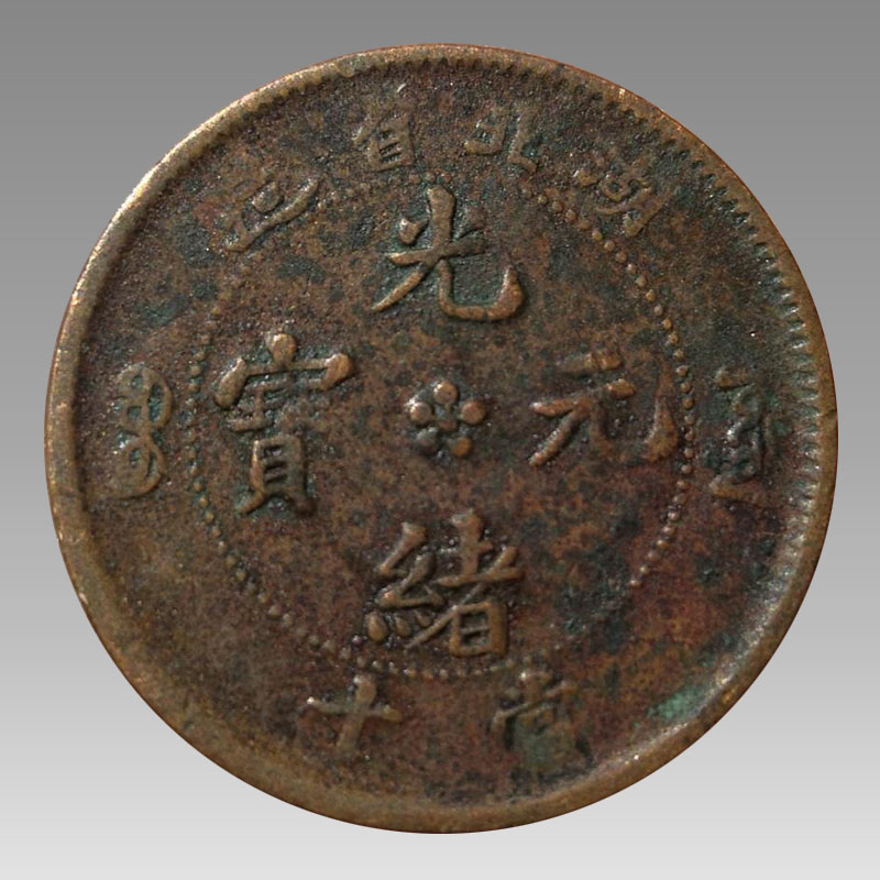 古钱币极具观赏性与历史价值,因此古钱币如同其他古玩一样被藏家们所青睐。中国最早的机制洋式银元为光绪年间的“光绪元宝”,俗称“龙洋”,因钱币背面一般铸有龙纹而得名。珍稀古钱币是货币历史的实物,由于早已不在流通领域,留此湖北省造光绪元宝,正面圈内铸有铭文“光绪元宝”,珠圈外上环分别铸有楷体“湖北省造”字样,底部铸货币价值:“当十”,币中心为满文“光绪元宝”。正面铸有铭文,顶部铸楷体“湖北省造”,底部铸“当十”标识,中心直读“光绪元宝”四字,币中心还有八瓣花。铜币背面外圈顶部余部用小号英文标准字体铭“大清*铜币