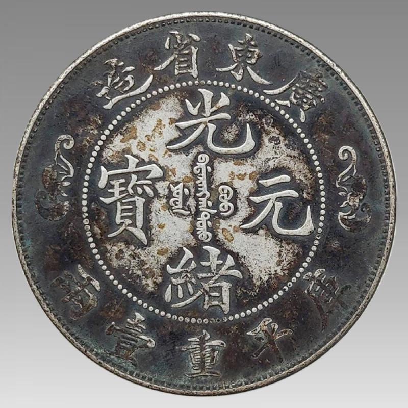 "此币铸于光绪三十一年(1905)初,为纪念慈禧七十寿辰而铸(一说是光绪二十年铸)。张炯伯在《广东省造银币》一文中写道:""惟本品因未纪年,殊难遽断,然观其图案,谐作福寿,环绕双龙,幕无英文,意含颂祝,大异常制。由此以推,成为纪念币之一种,专铸以祝慈禧太后七旬万寿者也。"" "