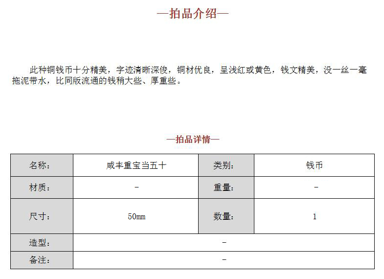 拍场聊天室:咸丰重宝当五十SJQB7429
