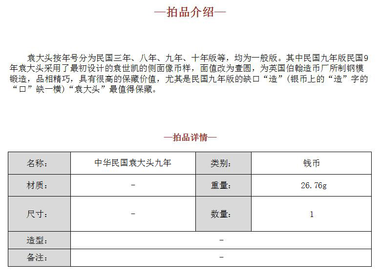 拍场聊天室:中华民国袁大头九年SJQB7692