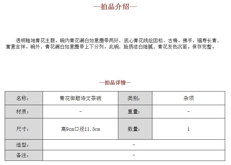 拍场聊天室:青花御题诗文茶碗SJZX2583