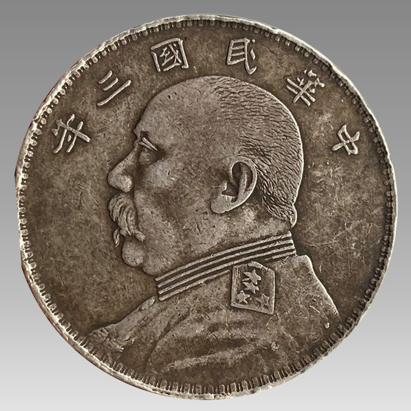 钱面:袁世凯五分侧面像,上环“中华民国三年”六字,大胡子。袁像民国三年O版大头,简称欧版。目前所见O版,全都是中华民国三年的.O版图案与普通三年袁大头银币大体上一样,此外,人物的衣领,肩章,发丝也不同于普通三年。且大肩章的肩章比较大,星最小。此币包浆熟旧,无撮记划痕,历经岁月洗礼银色呈现一种古朴美和自然美,更增强了该币的观赏和收藏价值。