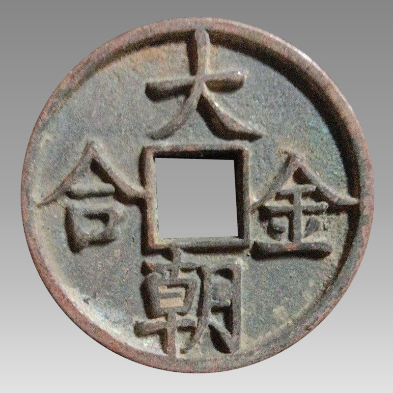 钱文有"大朝"二字,因此倾向于蒙古汗国改称元以前称大朝时铸。大朝金合钱文、铸造均较精美,风格不类蒙古早期铸币
