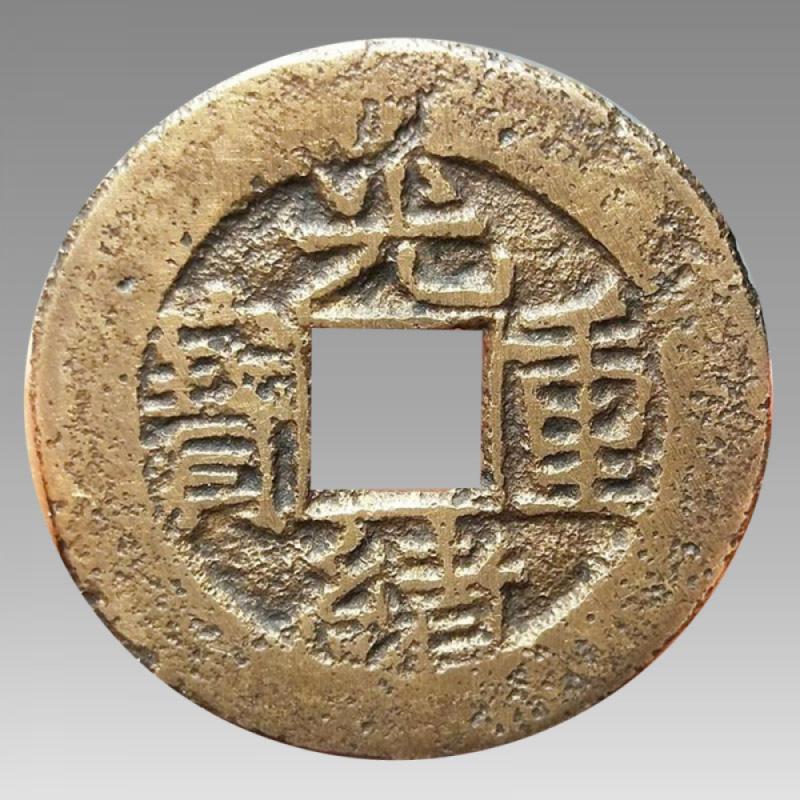 光绪重宝是清德宗爱新觉罗载湉在光绪年间 公元1875-1908年 所铸的当五、当十钱。形制较小平钱工整,面文为清秀楷书,直读,背穿左右为满文宝局名,上、下为汉文"当五"或"当十"二字。传世以户部宝泉局和工部宝源局铸造的较为常见,旧谱所列的各省局铸造的18品,恐系补铸,今不多见。