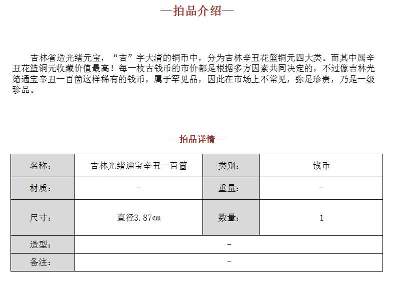 拍场聊天室:吉林光绪通宝辛丑一百箇SJQB8298