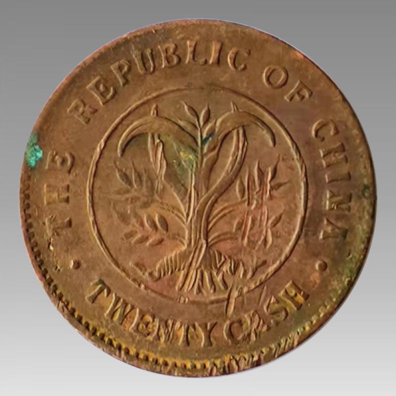 湖南省造双旗币产生于民国时期,民国在中国历史上仅仅存在了几十年的时间,在当今的藏品市场中是并不多见的。历经岁月的洗礼,历史的沉淀,表面些许银氧化发黑,锈色自然纯正,品相稍有磨损,属传世流通的精美品。正背面内圈铸有中心为蟠龙图,外圈有英文环绕。钱币结构端庄规整,做工精良,版面设计别致,雕工精湛、字迹清晰深俊,如斧削刀切,钱文线条透露出一股抑扬顿挫的刚毅之劲,富有神韵,枚铜币精品湖南省造双旗币,藏品直径:3.2cm,重:9g。藏品币正面图案中央为两面交叉的国旗,上方为“湖南省造”4字,下面为记值:当制钱二十文