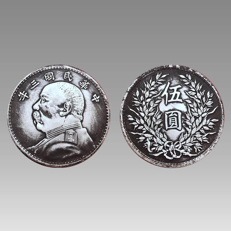 这枚袁大头为中华民国三年袁大头伍圆,包浆熟旧,品相完好,字迹清晰,边齿工整,大小一致,齿深浅一致,背图嘉禾规范清晰,在所有的袁大头版本中,伍元版是最受瞩目的一种。